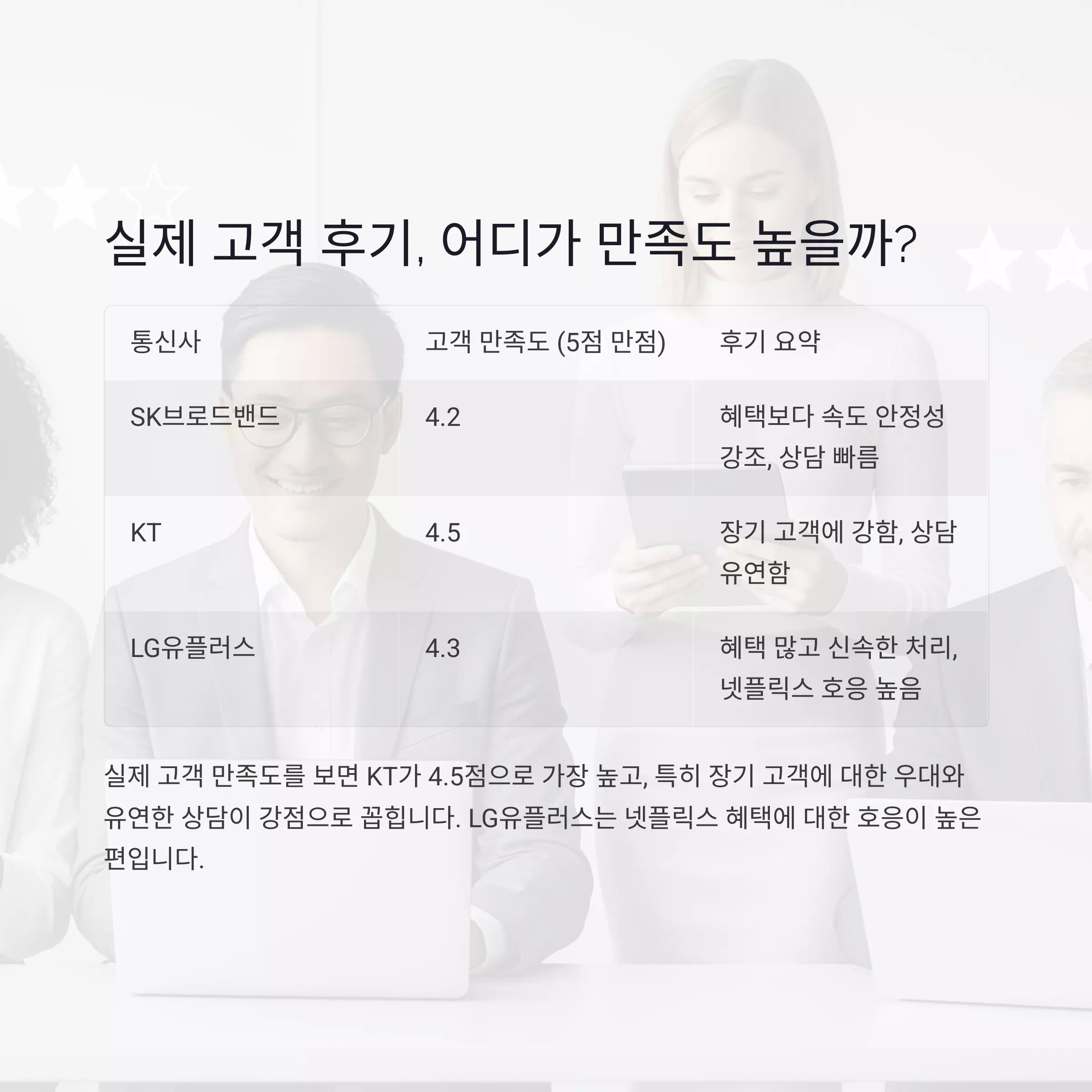 | KT | 4.5 | 장기 고객에 강함, 상담 유연함 |